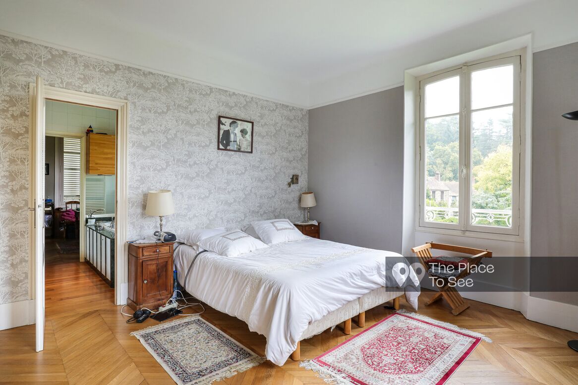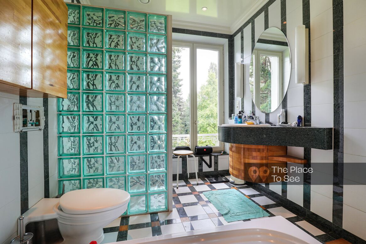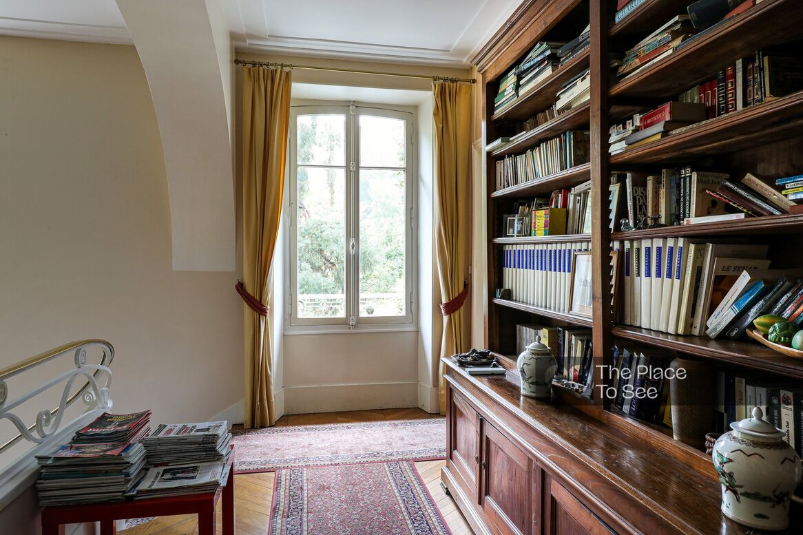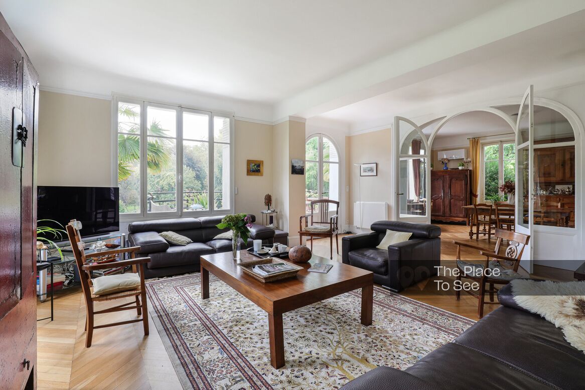 Upon entering, a vast hall leads to a large living room opening onto the terrace. The adjoining dining room connects directly to the kitchen, while a spiral staircase leads to the garden level.