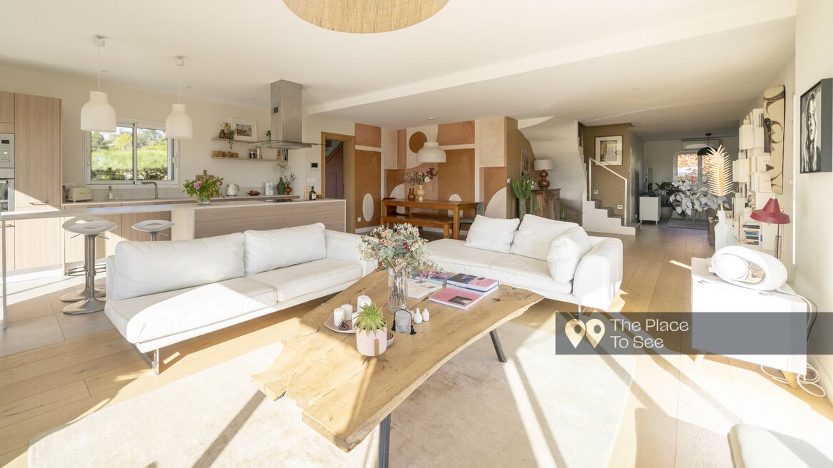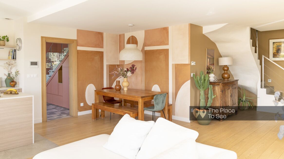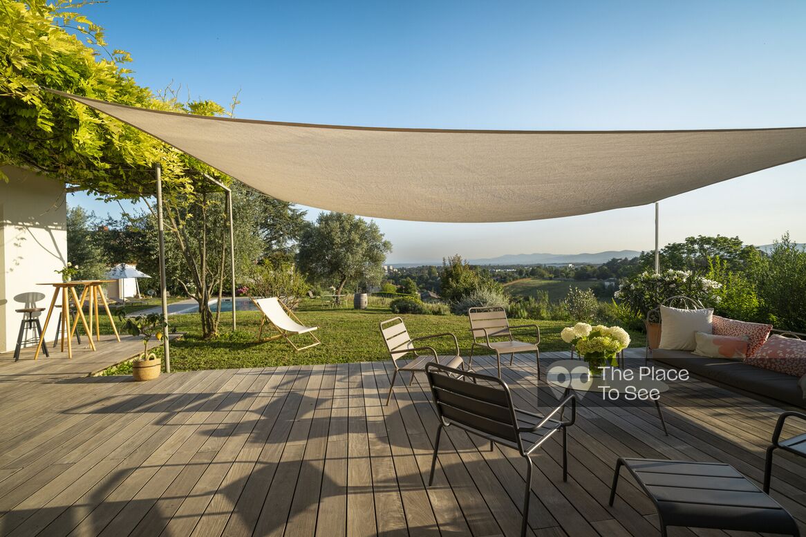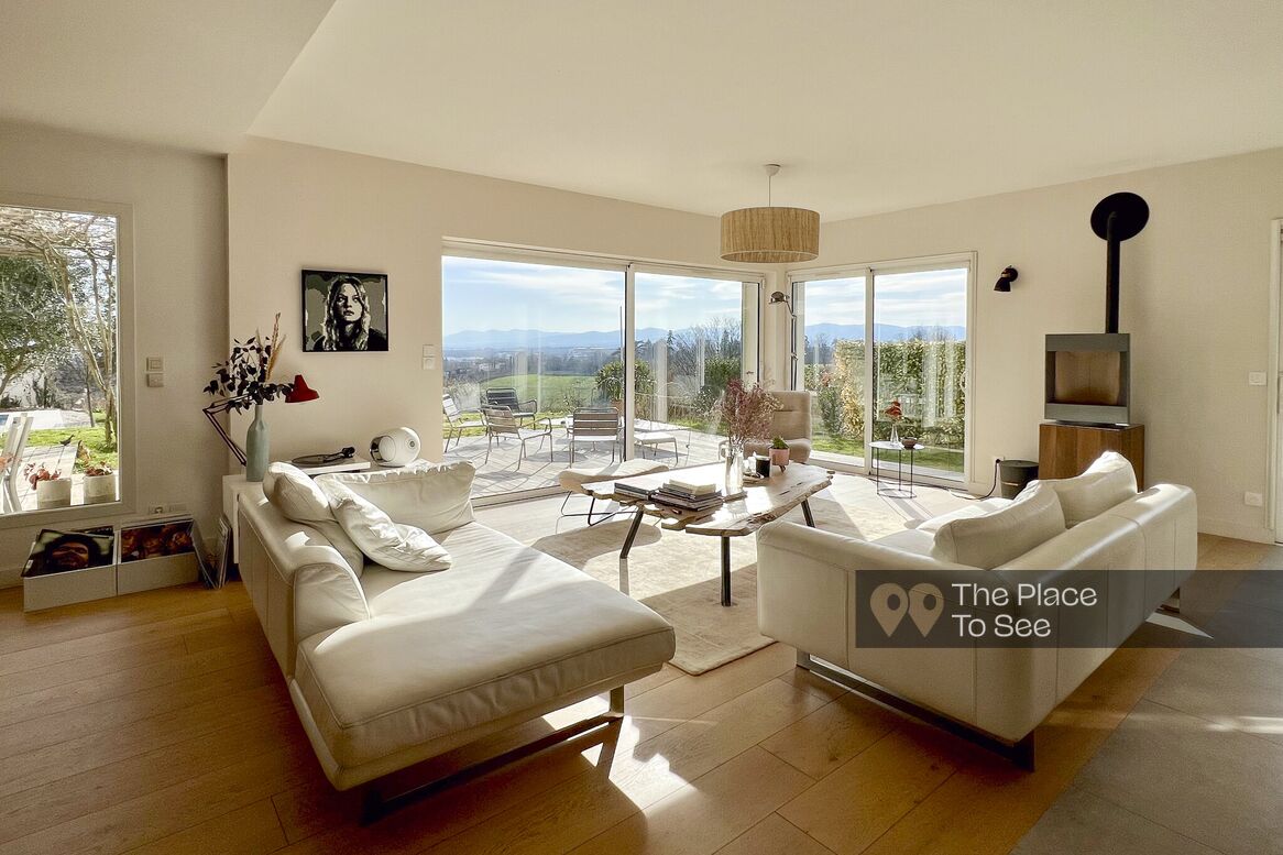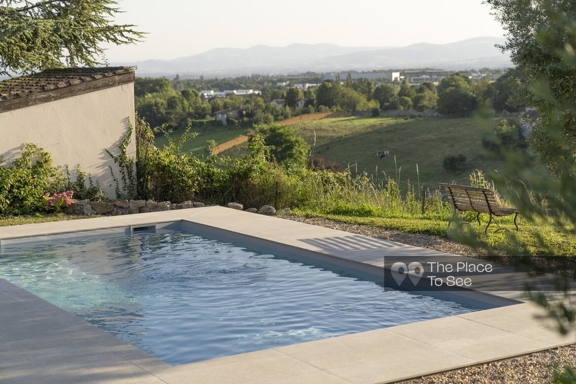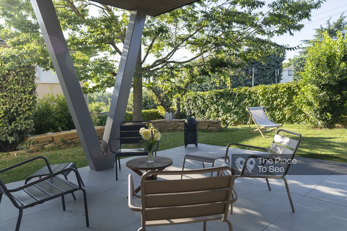 Located in a quiet environment, surrounded by greenery and offering a clear panoramic view of Lyon and its surroundings, this beautiful house stands out for the care taken in its design and for the total change of scenery it offers.