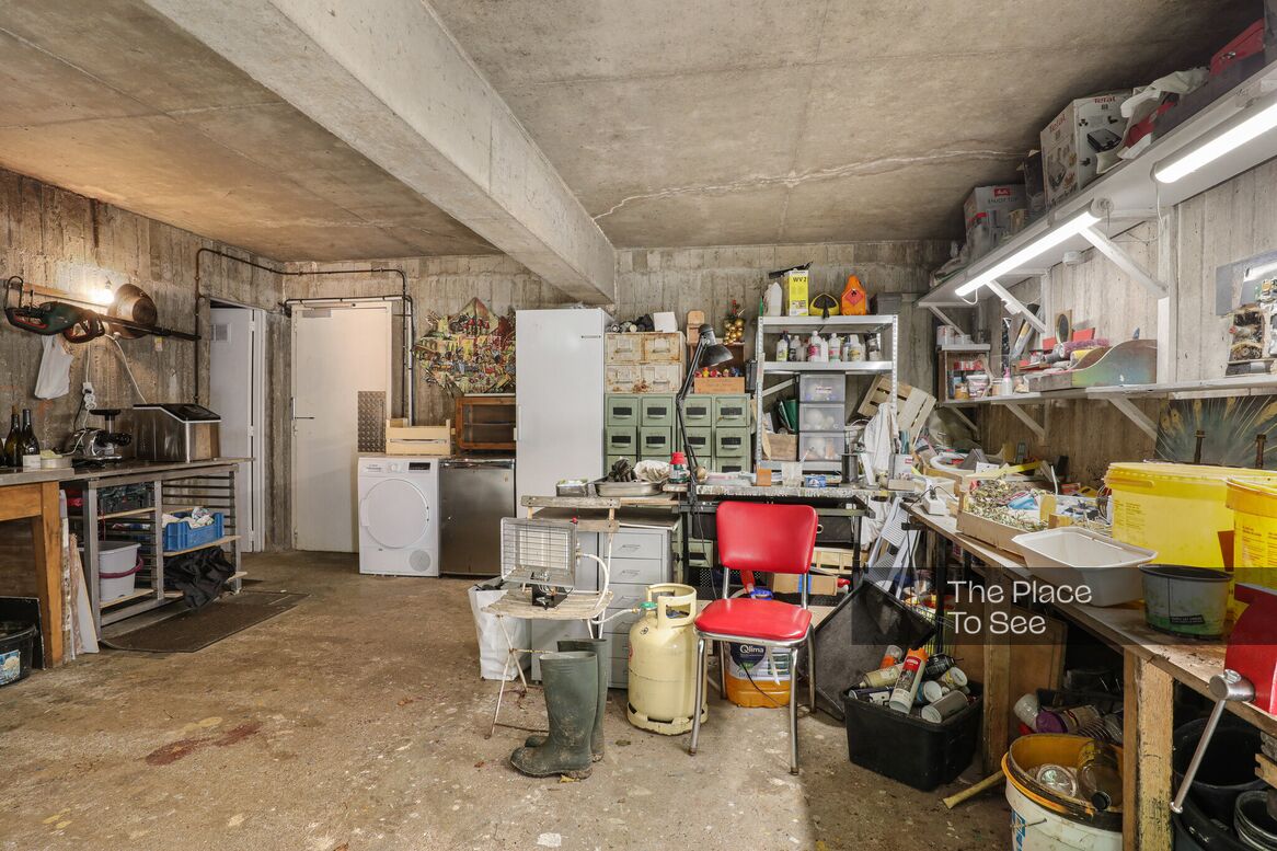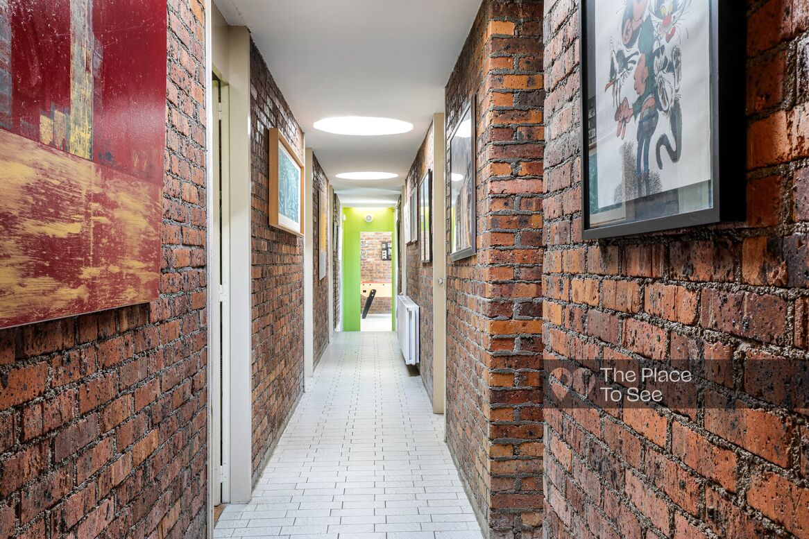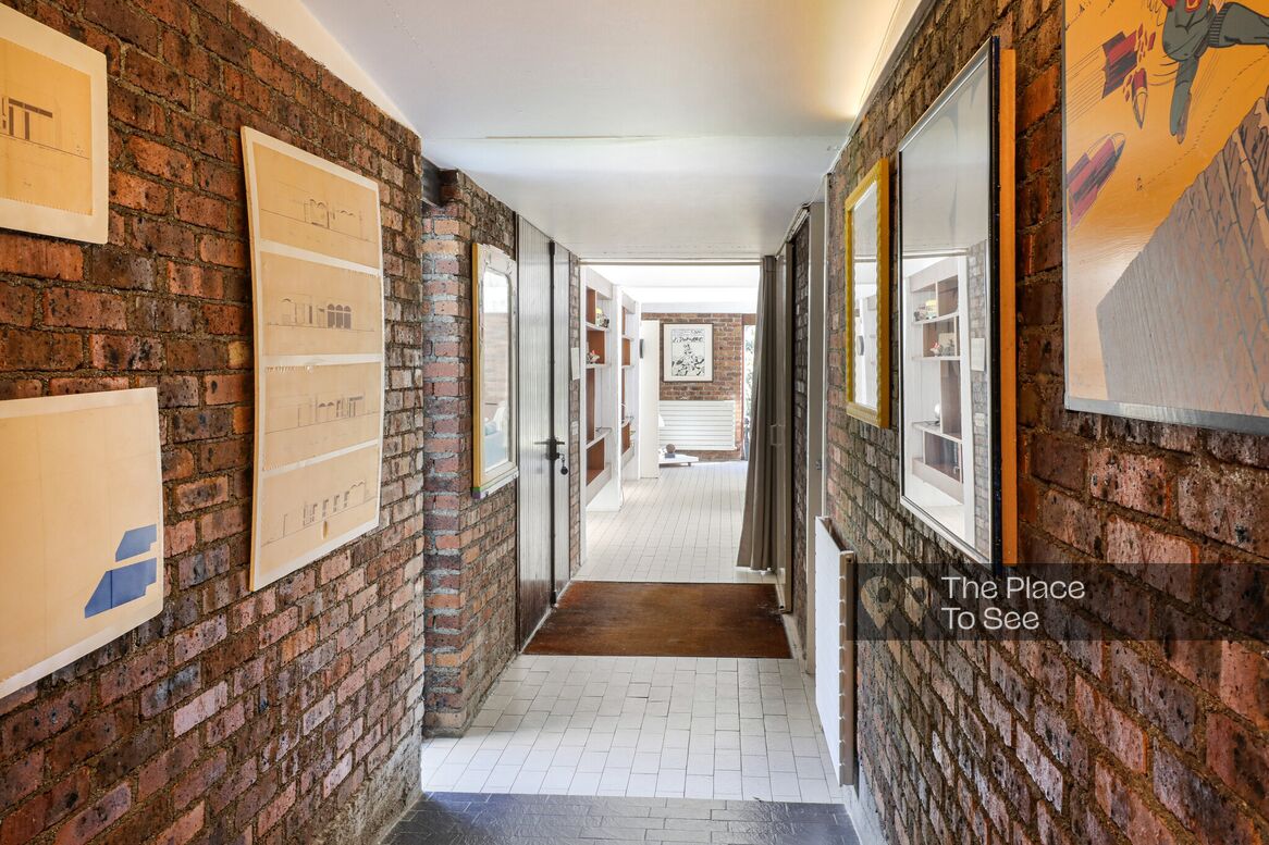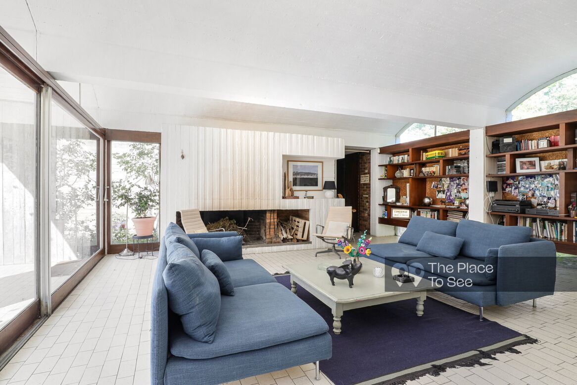 Brutalist house with concrete structure and vaults. 70's era furniture.