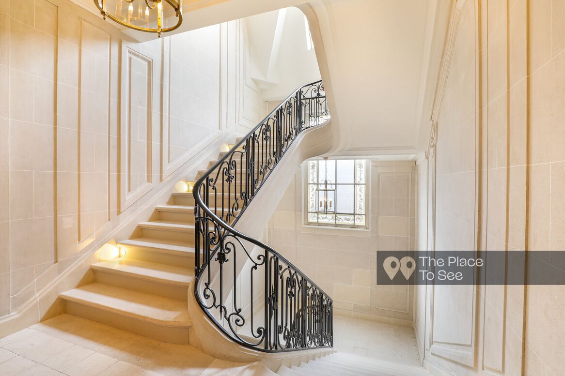 The complex also includes two grand staircases with elevators and two service staircases, as well as underground parking and cellars.