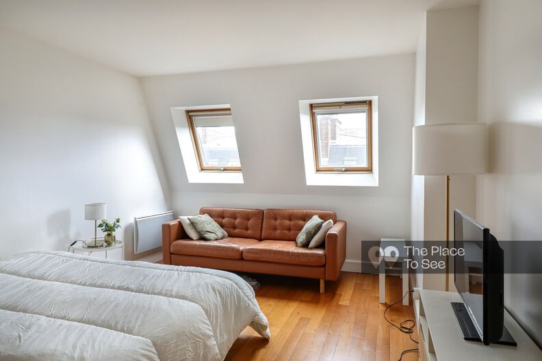 This condominium, housed within a Haussmannian building, offers a wide range of uses.