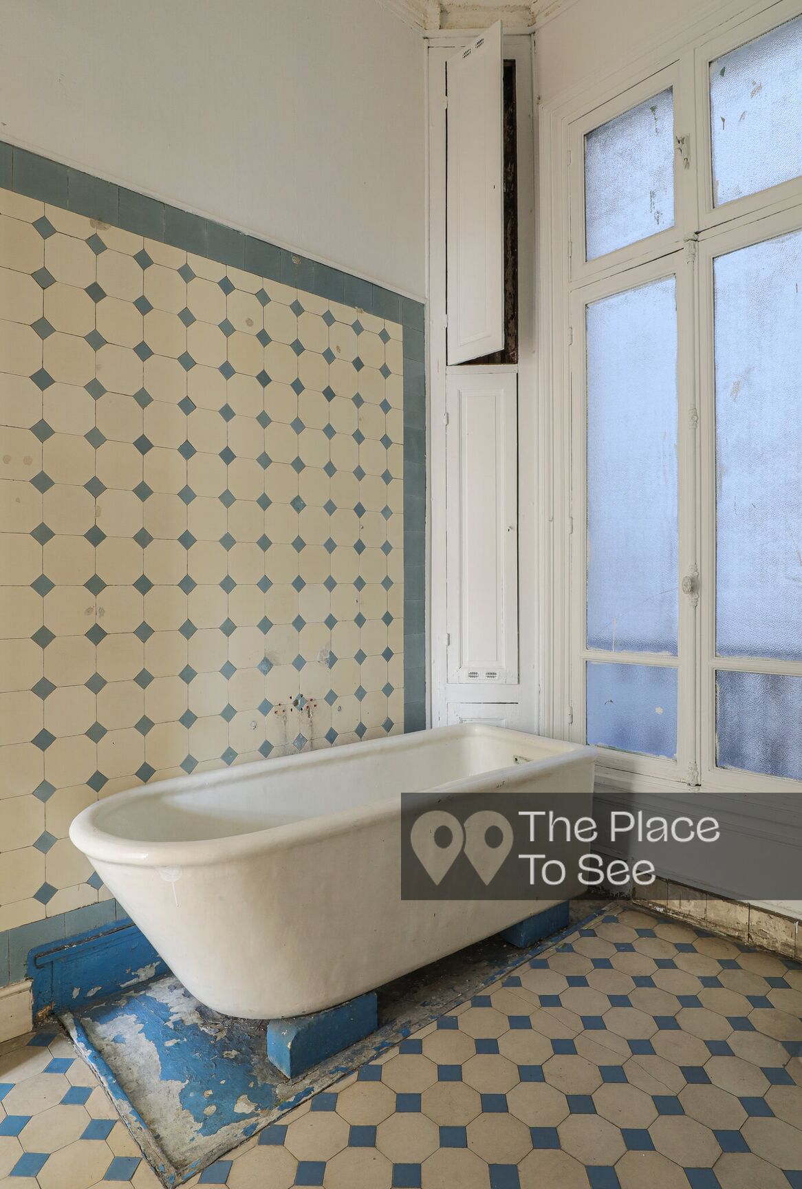 From this room, three adjoining reception spaces follow in a classic enfilade: a white salon, a salon with refined wood paneling, and a third salon featuring a faience fireplace.