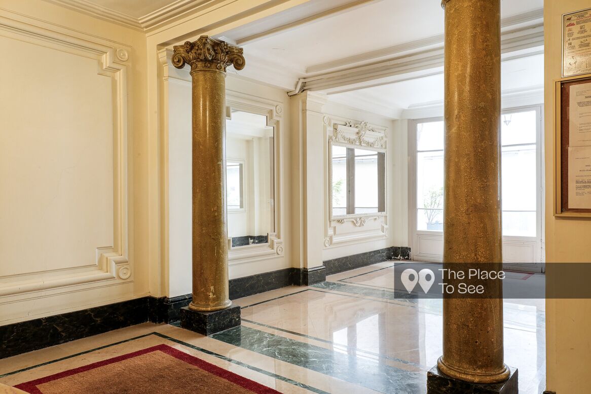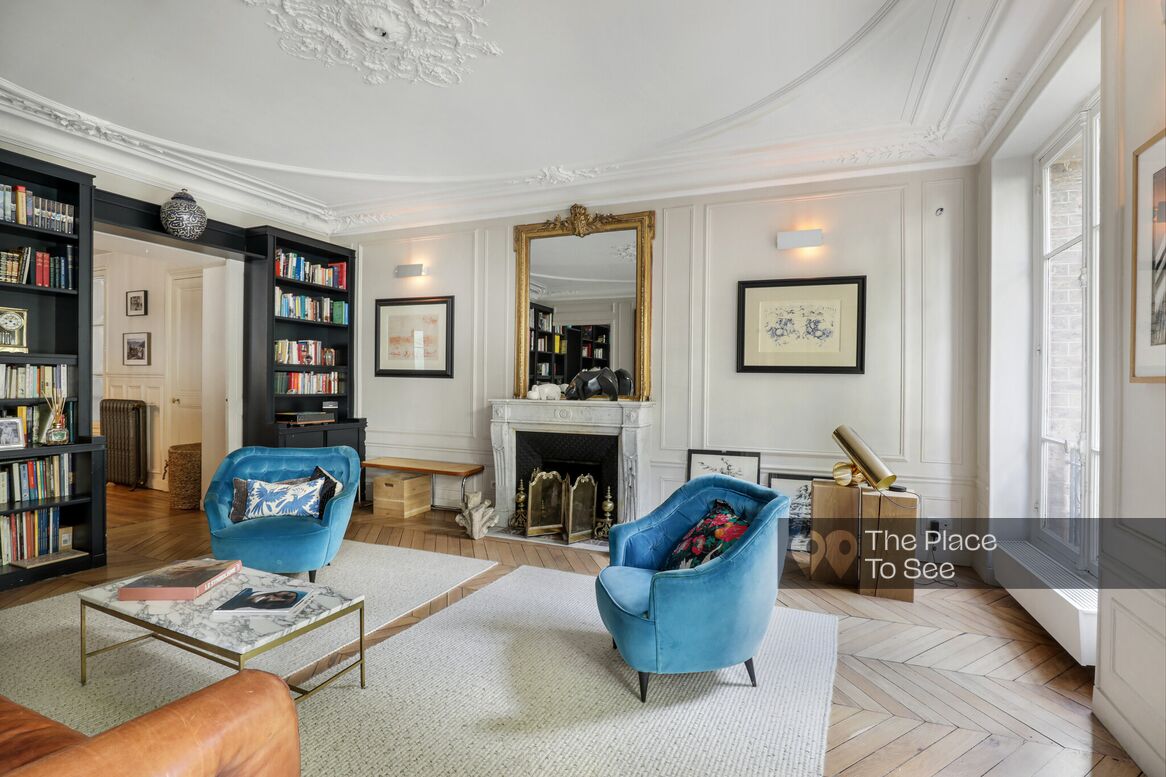 This renovated Haussmann-style apartment with vintage and 1970s furniture is located on the first floor of an early 20th-century building.