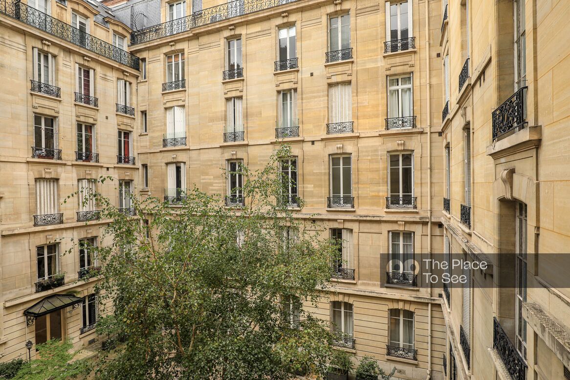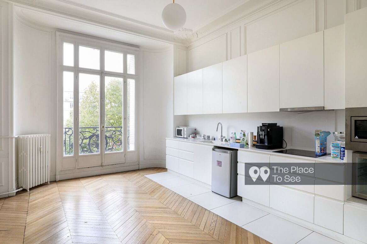 This office, located in a white-walled Haussmann-style apartment, will soon be completely emptied, offering a clean and flexible space. Its classic proportions, herringbone parquet flooring, and natural light make it an ideal setting for photo shoots or filming, allowing for great freedom of staging.