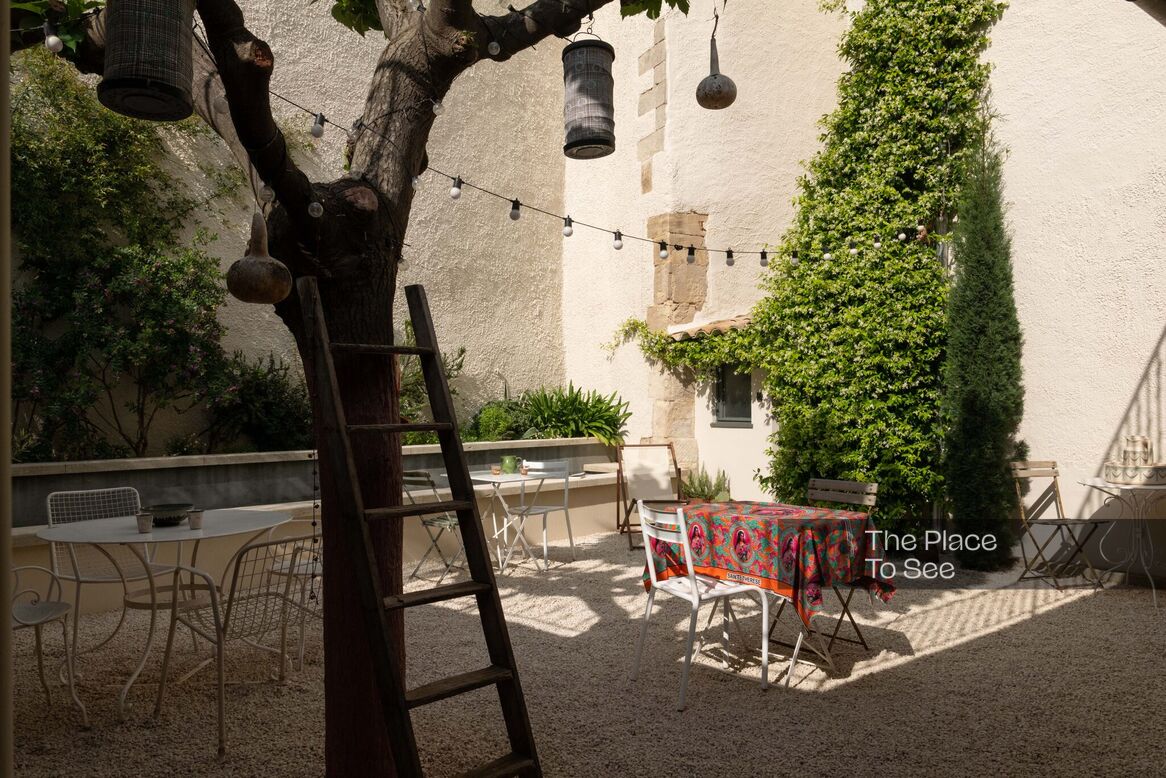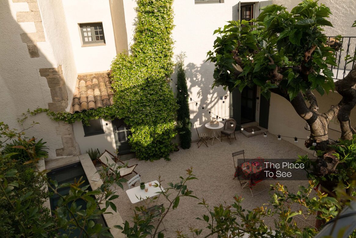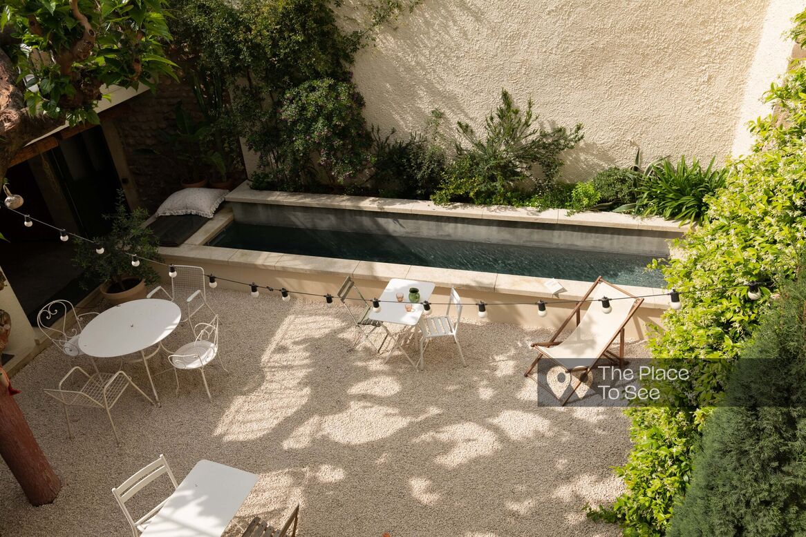 The exterior has a 60 m2 interior courtyard and a bordered swimming pool.