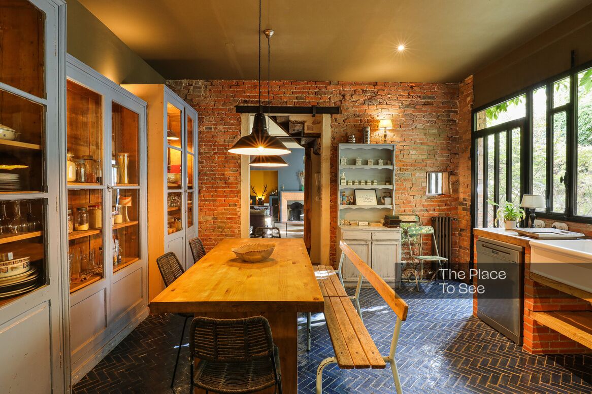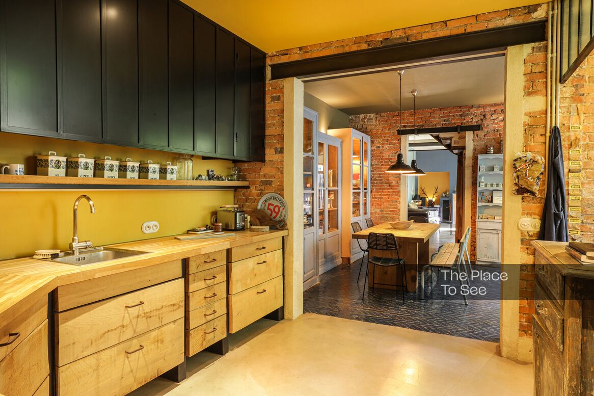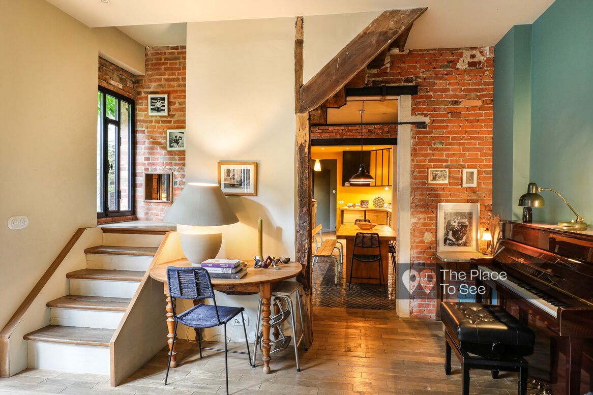 It features a large living room with a magnificent piano and a double kitchen opening onto a cobblestone courtyard.