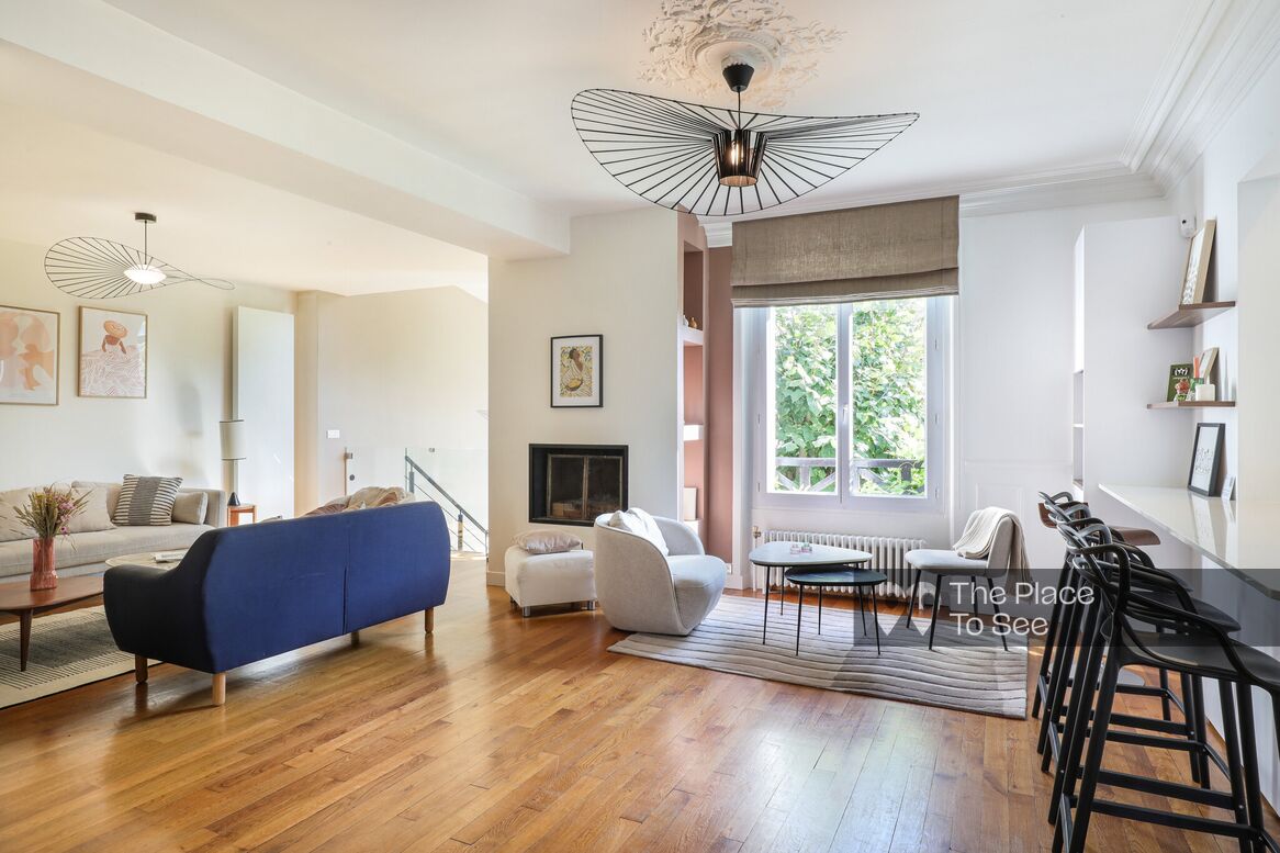Townhouse with contemporary extension opening a living space onto a terrace and garden