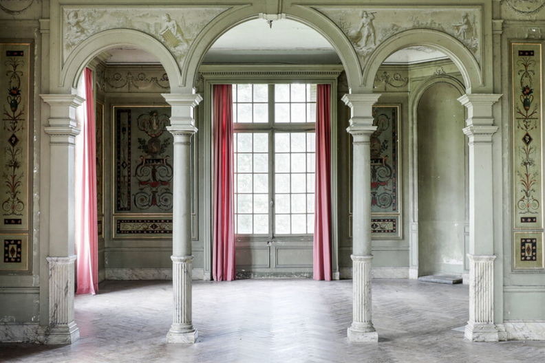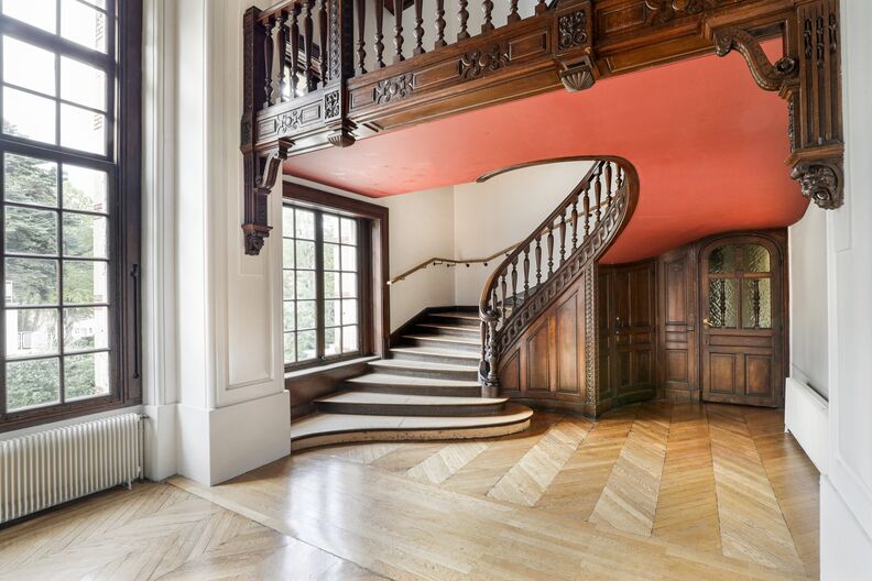 This 19th-century manor, completely empty and in its original state, offers 1,200 m² of interior space. Its double-columned living room, wooden staircase under a glass rotunda, and patinated bedrooms allowed the team to freely recreate sets faithful to the period.