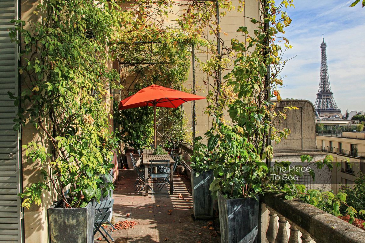 Charmante terrasse avec vue sur la Tour Eiffel et les toits de Paris