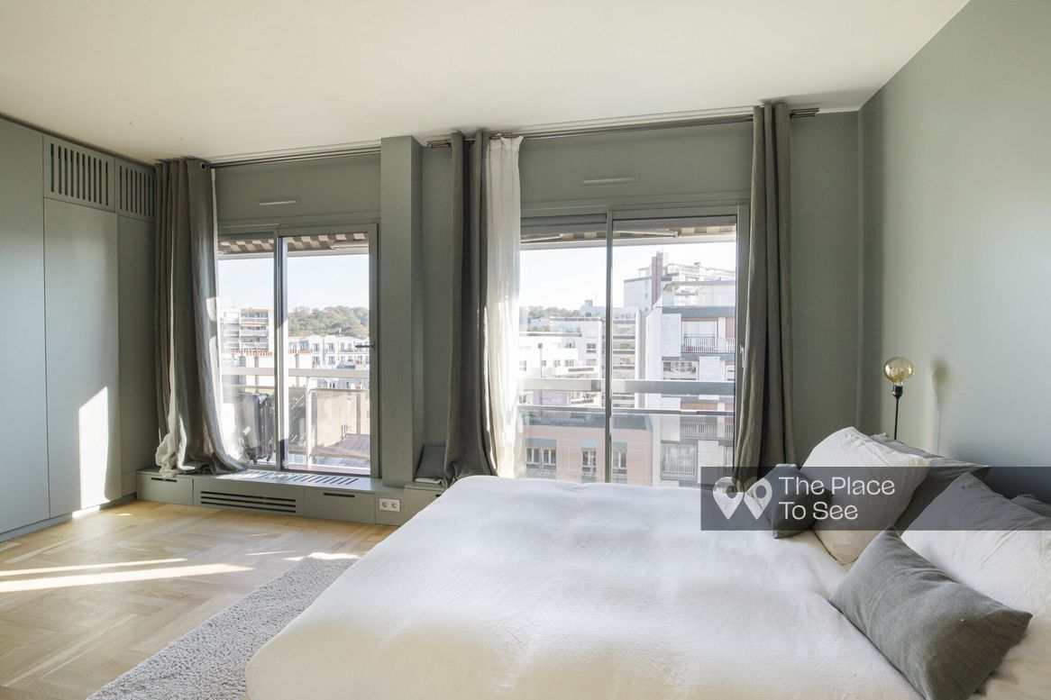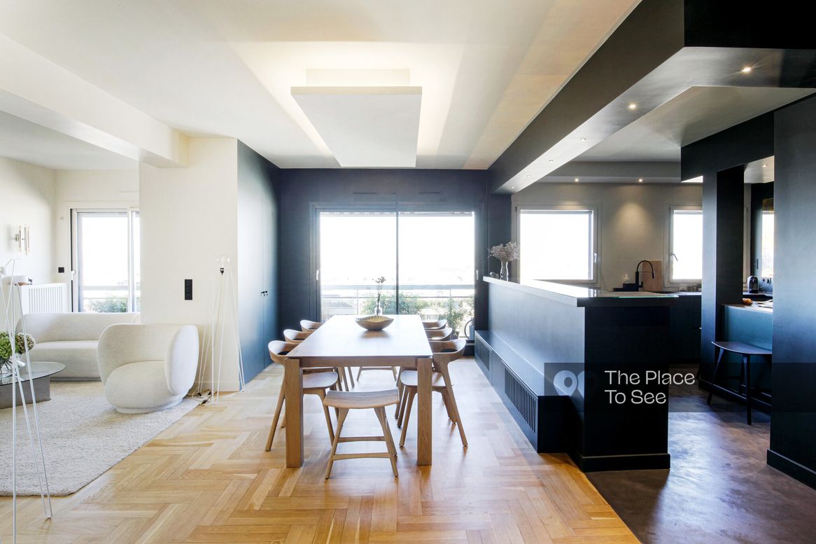 Cet appartement dans une résidence année 70 a été transformé et repensé dans un esprit résolument contemporain, chaleureux et coloré. Son entrée donne directement sur un petit salon, une salle à manger et une cuisine ouverte. La suite parentale avec salle de bain donne directement sur le salon et peut être isolée par des portes coulissantes. Une seconde grande chambre et une chambre d'enfant complètent cet appartement.