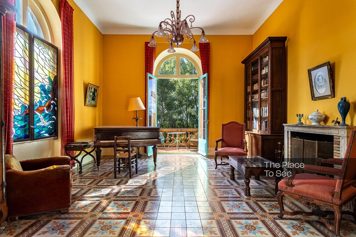 Cette villa Belle époque colorée possède beaucoup de charme avec des carrelages décorés, des vitraux multicolors, des meubles anciens...