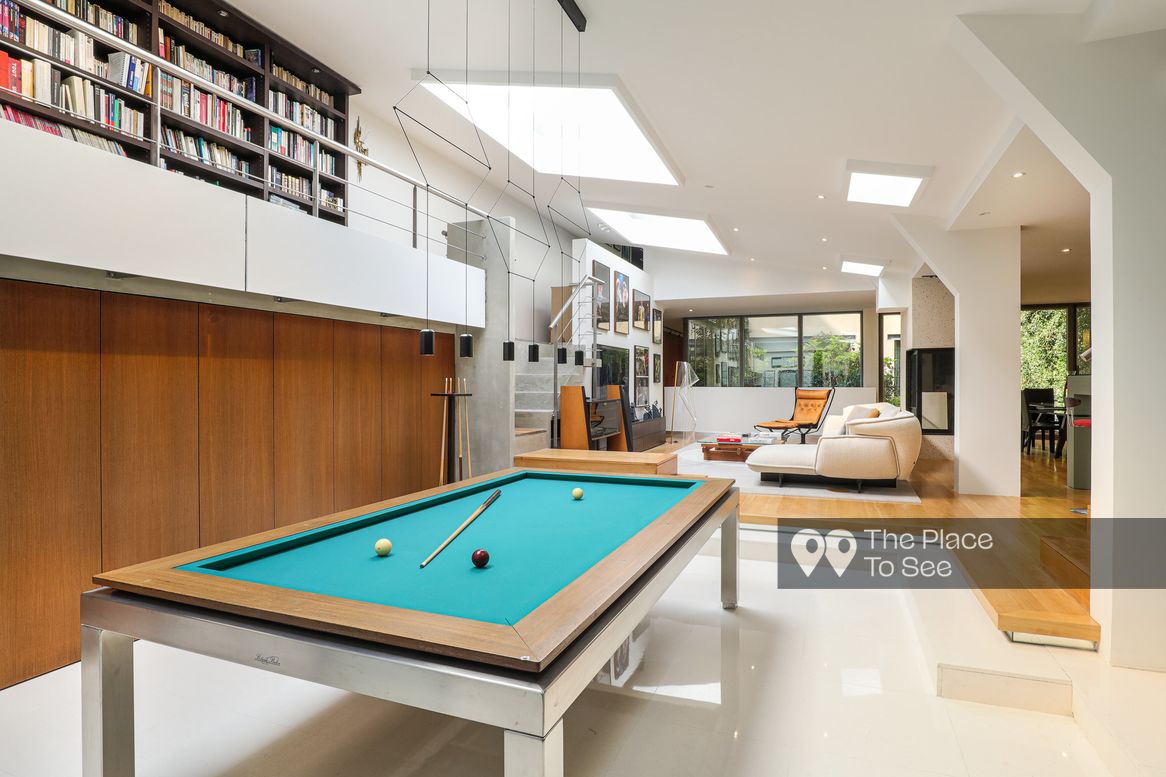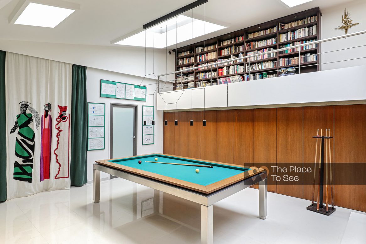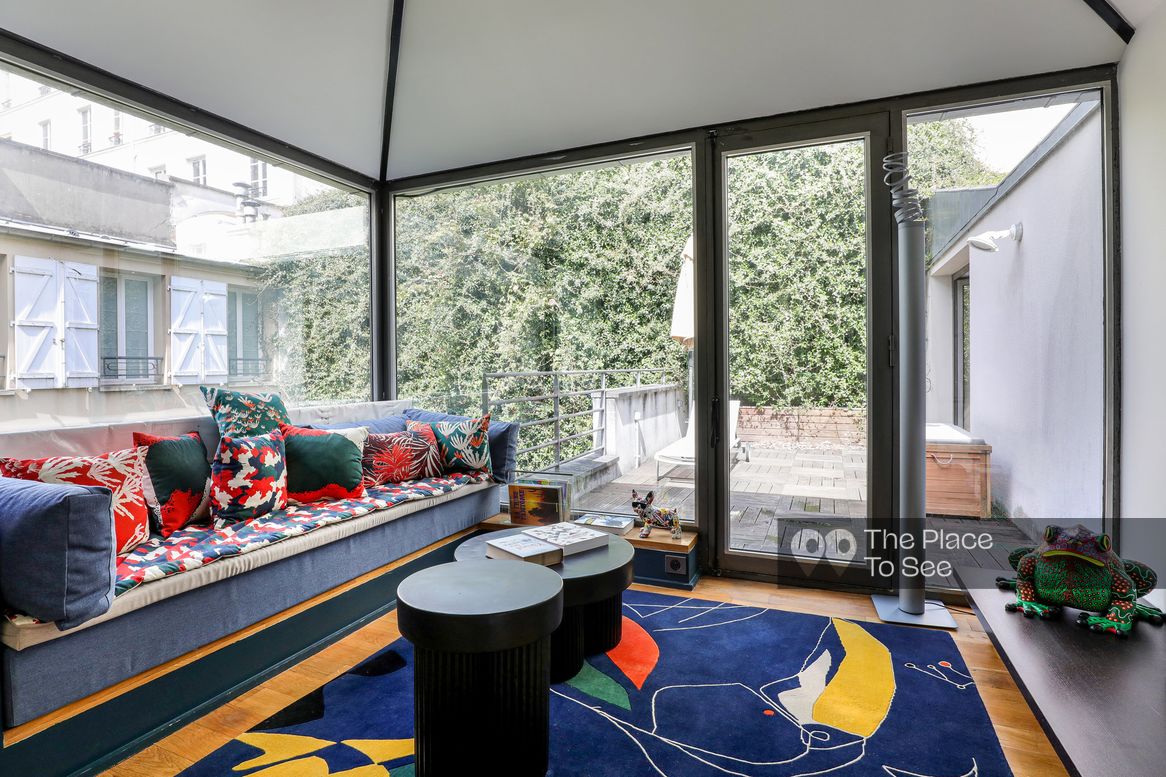 Maison loft situé en fond de cour disposant d'une grande pièce à vivre donnant sur un jardin. Décoration moderne avec billard et bibliothèque.