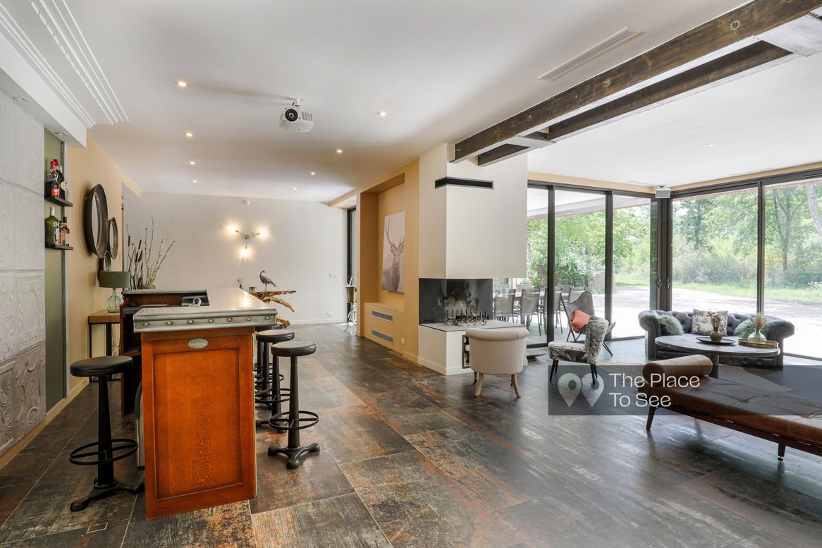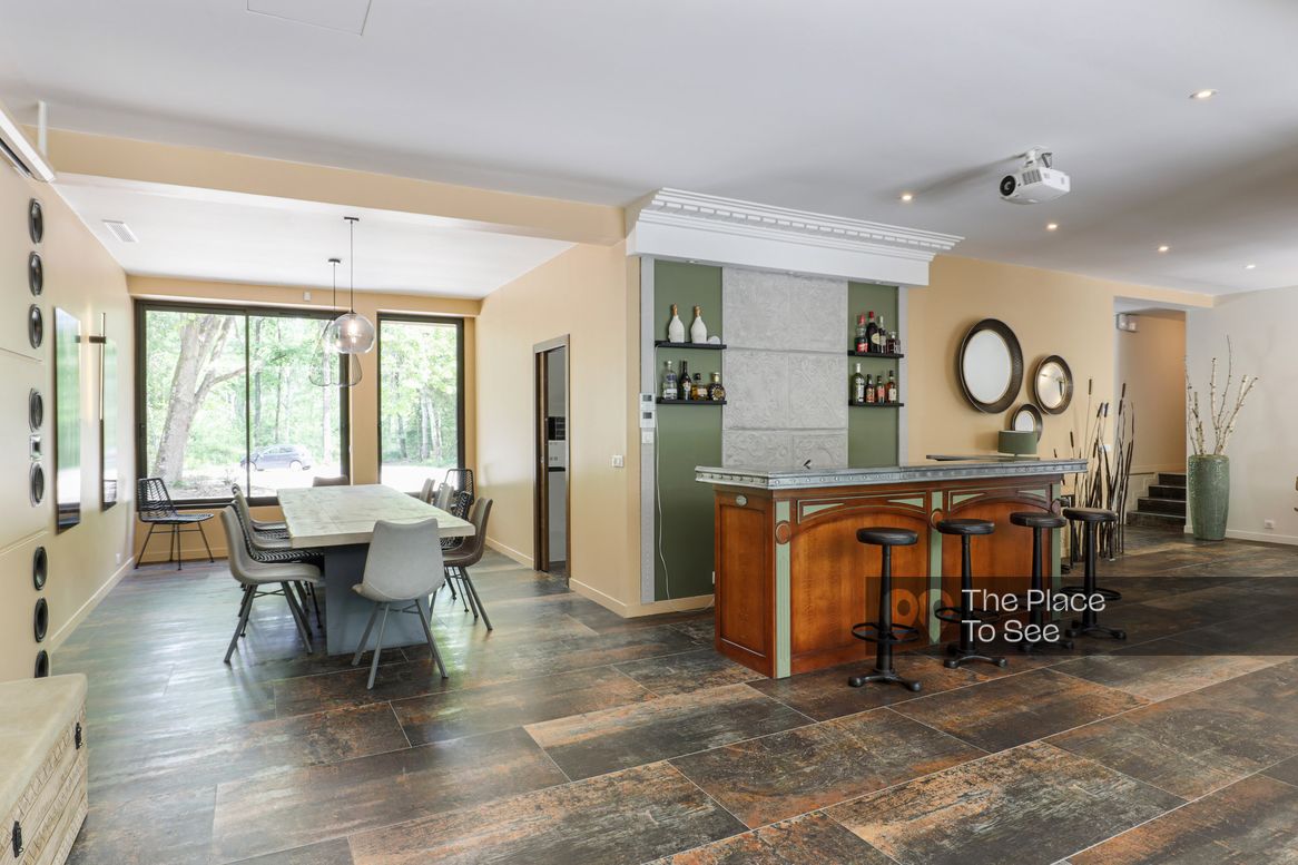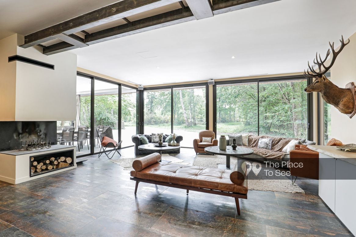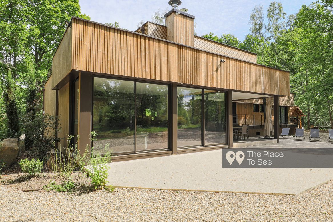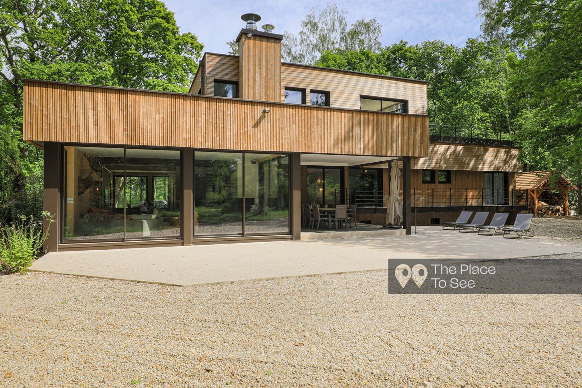 Maison d'architecte en bardage bois isolée dans la forêt. Grande pièce à vivre, 5 chambres avec salle de bains.