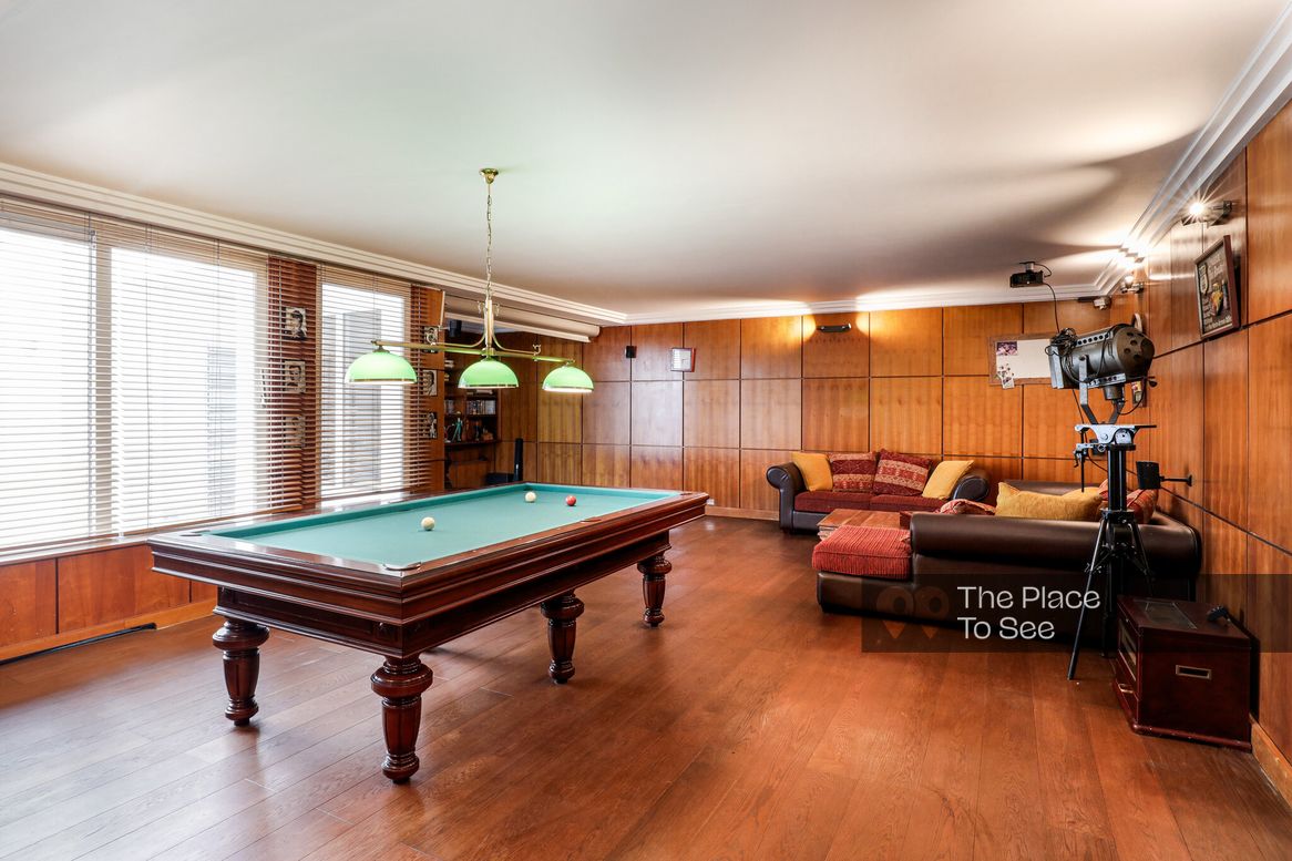 En entre-sol, un spa avec sauna, hammam et jacuzzi, un home cinéma avec son billard doté d’une fenêtre en cours anglaise.