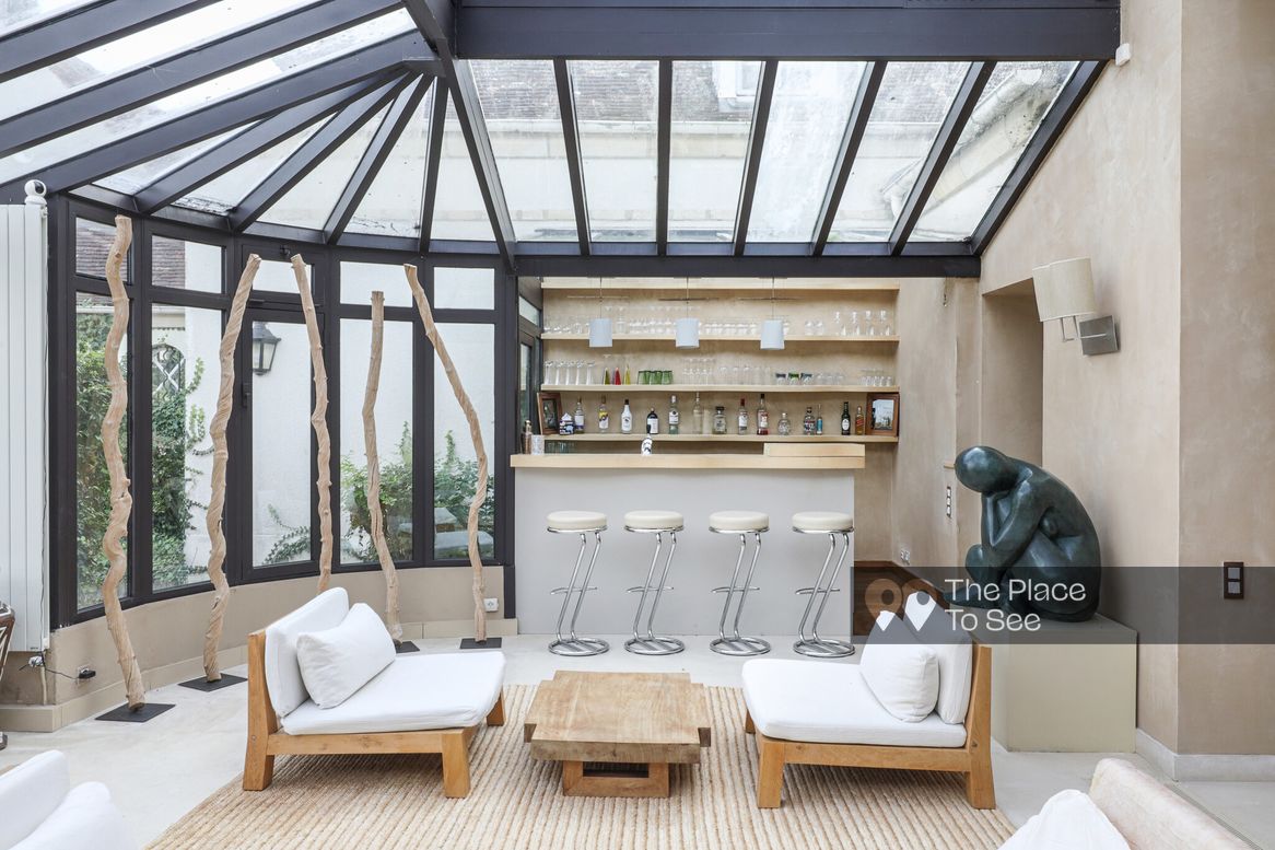 L’ensemble est composé d’une salle à manger, d’un grand salon en décroché de niveau. En demi-lune un salon d’accueil sous véranda, avec bar.