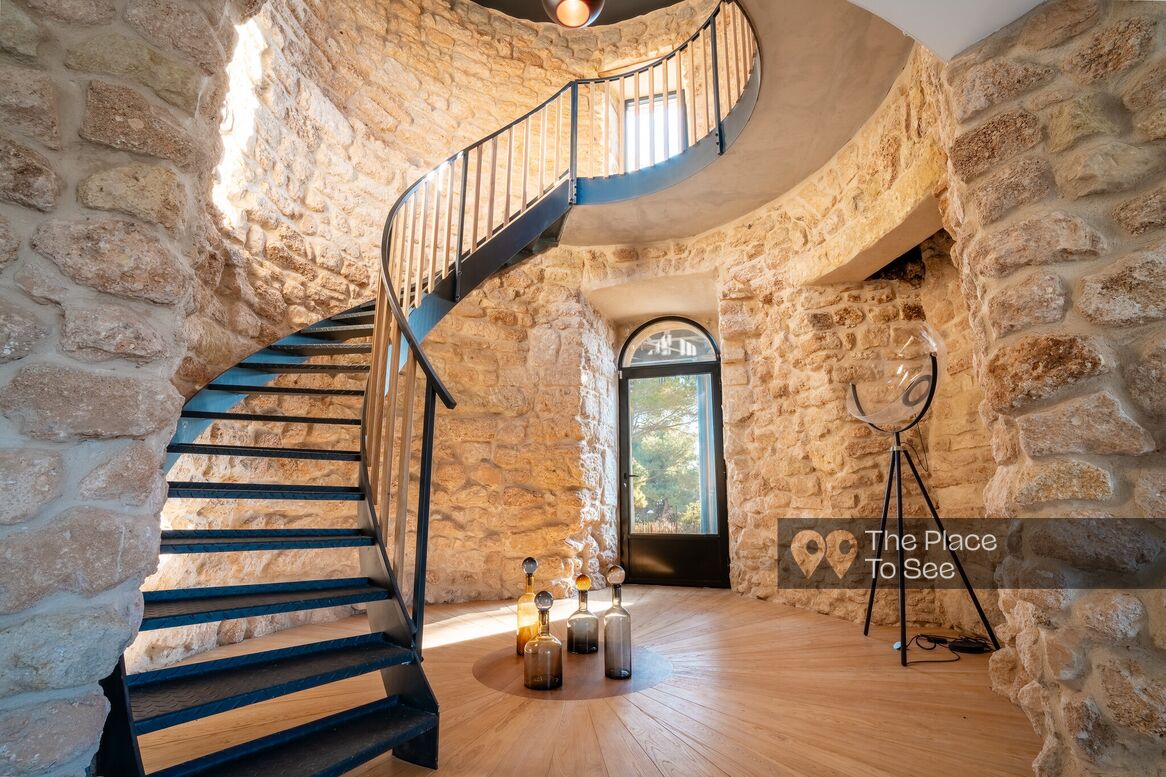 Cette maison allie avec élégance l’ancien et le moderne : un ancien moulin se marie à une extension contemporaine aux lignes épurées et aux grandes baies vitrées. L’ensemble s’ouvre sur une terrasse en bois bordant une piscine. L'intérieur est une harmonie superbe entre rustique et contemporain : un mur en pierre apparente, la cuisine ouverte, équipée et épurée, avec son îlot central, un salon chaleureux, de grandes baies vitrées tout le long de la façade créent une ambiance moderne, conviviale et chaleureuse.