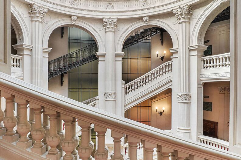 Rochas a choisi cet hôtel particulier de la fin du XIXᵉ siècle, situé dans le quartier de l’Opéra, alliant architecture classique et charme parisien. Le hall s’ouvre sur deux atriums de 250 m2 et une rotonde lumineuse avec escalier à double révolution. Le premier étage propose passerelle, salons privés et salle de conseil, tandis qu’au sous-sol, des espaces modernes complètent le lieu. Ce cadre élégant a permis de mettre en scène la collection Rochas 2025 avec style et sophistication.
